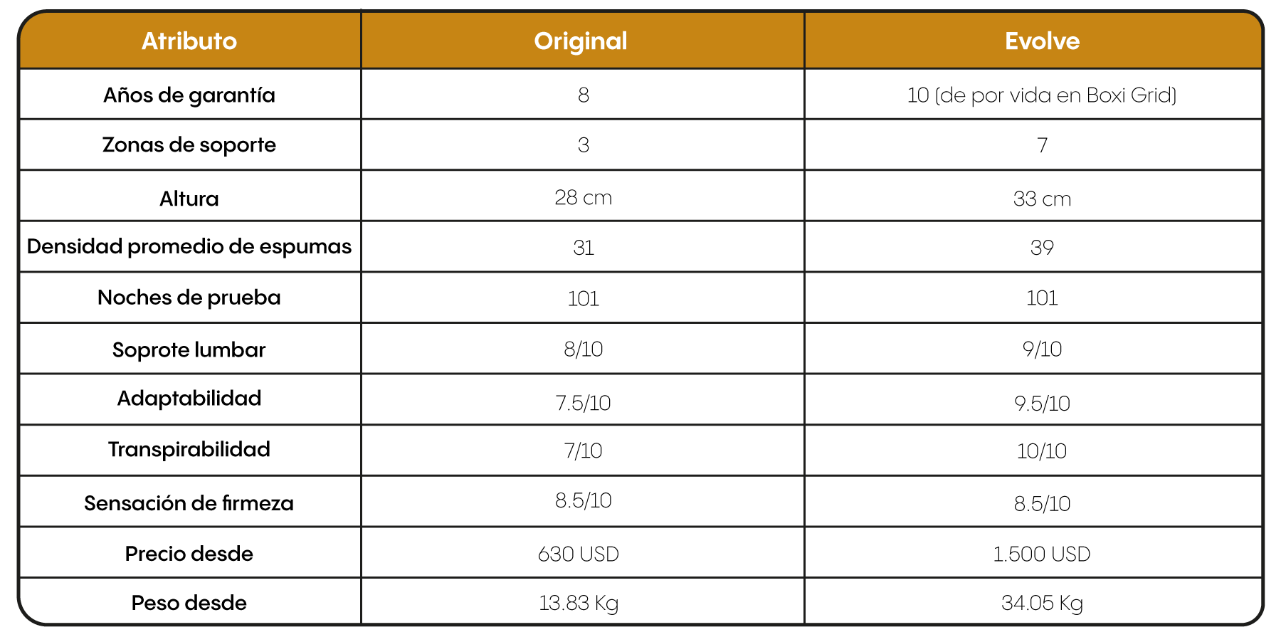 Estamos tan seguros de la calidad de nuestros colchones, que el Boxi Evolve es el único colchón en Venezuela con garantía de por vida (solo en BoxiGrid®).